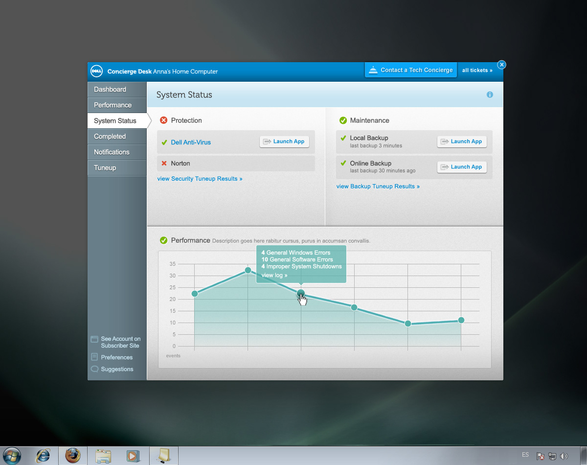 Key to the overall project goal was to develop a series of "views" that could highlight performance on an owner's computer in which they could visualize the combination of performance as well as ongoing "treatment" of the computer by the concierge service.